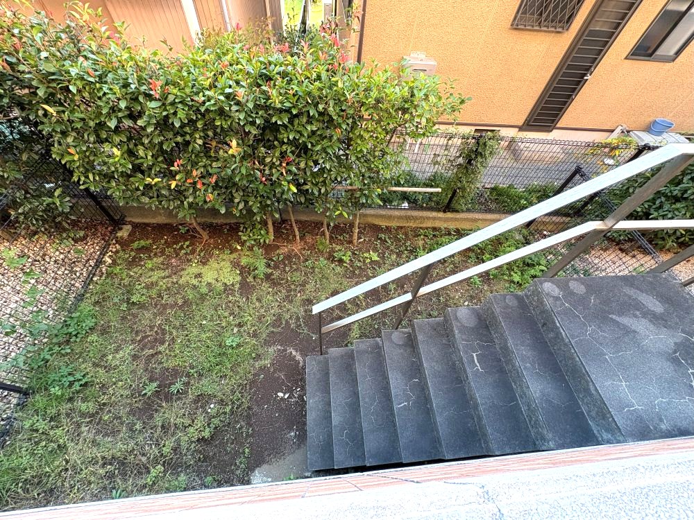 また、1階は専用庭付きで、バルコニーから階段(専用)を使ってお庭にアプローチしていきます。